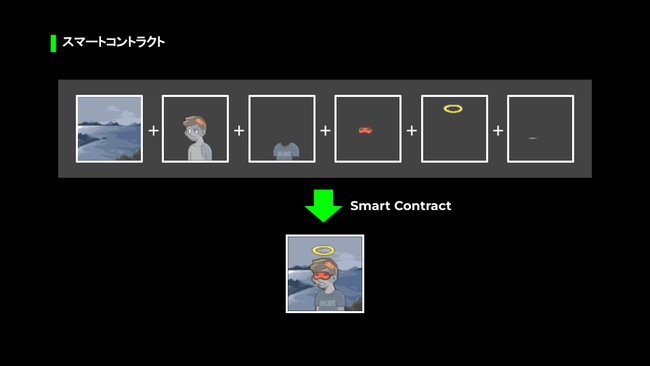 それぞれのパーツはメタデータとしてスマートコントラクト上に記録され、特有の価値を持ちます。