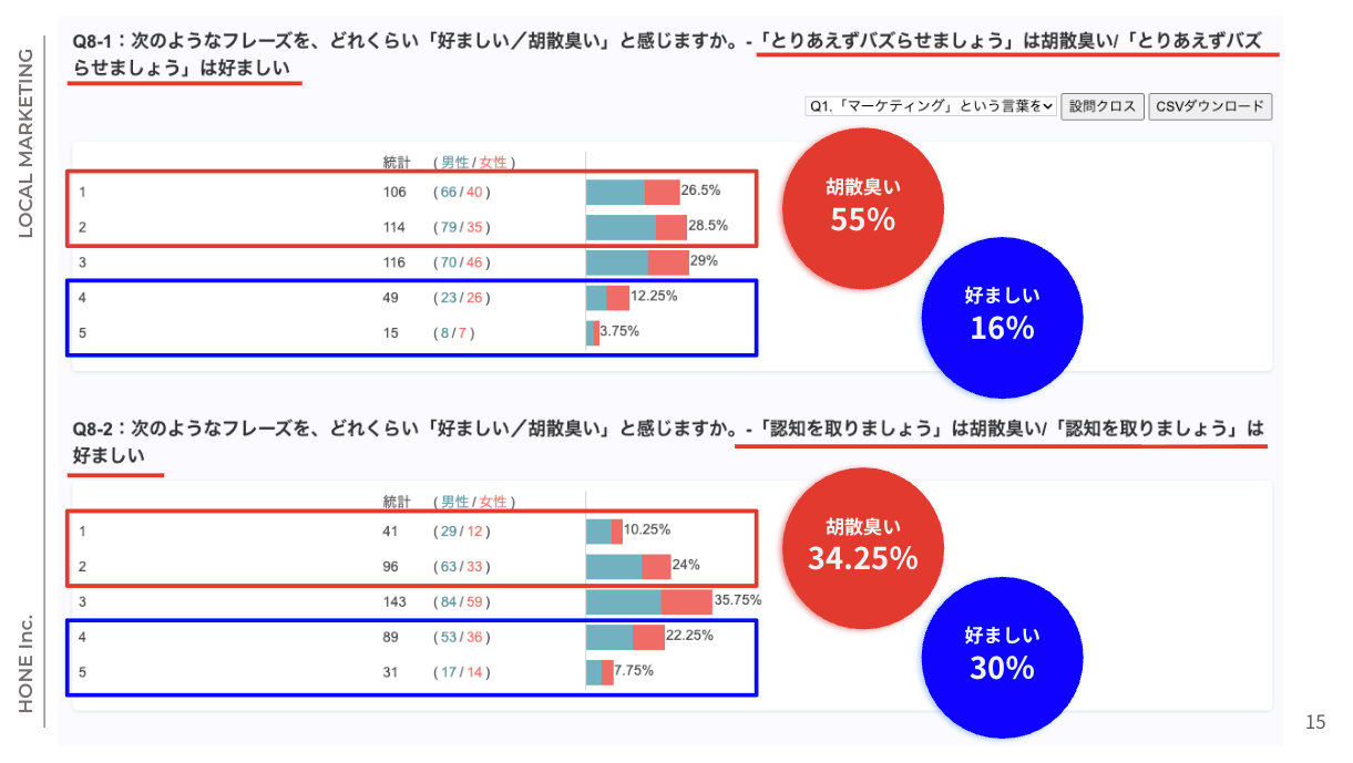 今回の調査は、その「胡散臭さ」とは具体的になんなのか?どんなことに原因があるのか?なにを解消すれば胡散臭さが晴れ、マーケティングが現場で機能しはじめるのか?について自主調査を行いました。