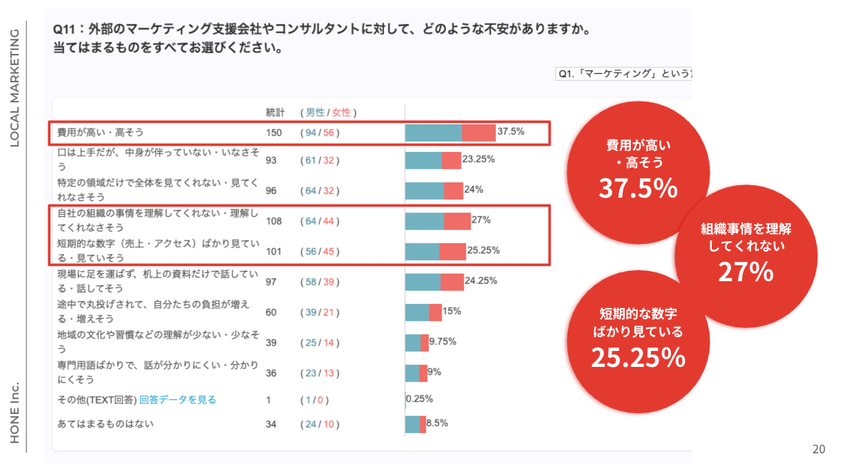 A. 社内勉強会・戦略会議のインプット、金融機関/支援機関連携の素材としてご活用ください。引用時は出典「株式会社HONE『マーケティングに関する実態調査について(2025年12月)』」とご記載ください。