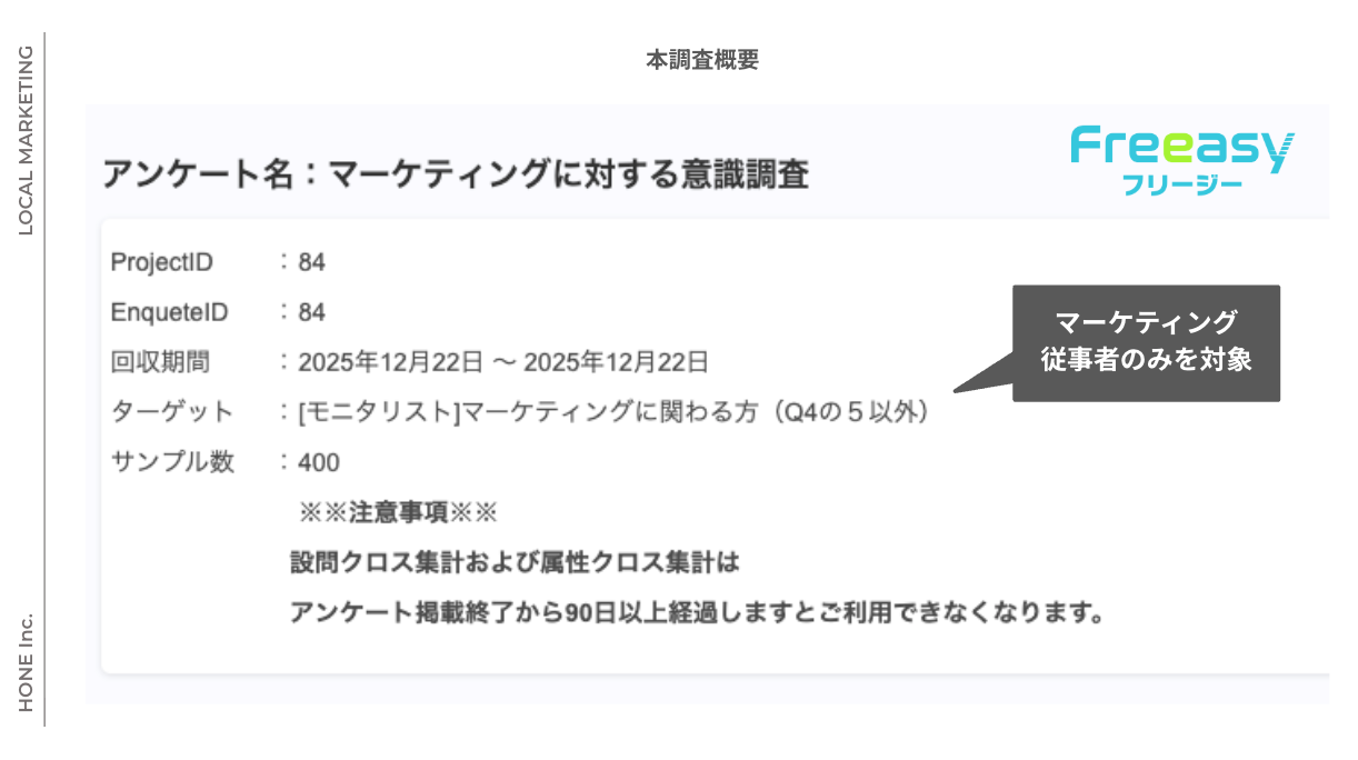- アンケート名:マーケティングに対する意識調査- 調査方法:インターネットリサーチ(Freeasy)