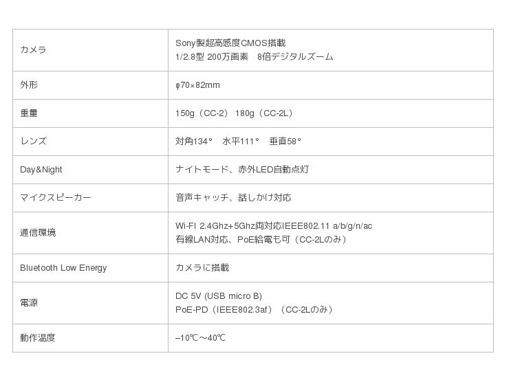 「Safie 対応CC-2」の主な特徴
