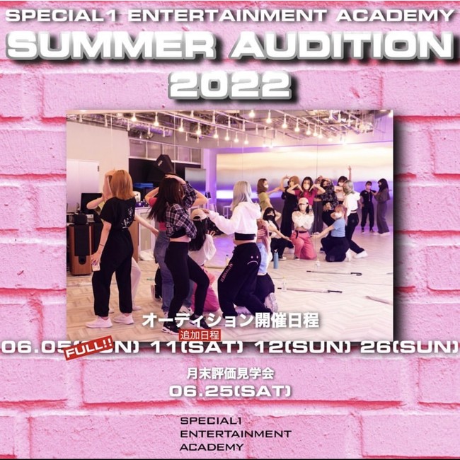○SPECIAL1 ENTERTAINMENT ACADEMY SUMMER AUDITION 日程