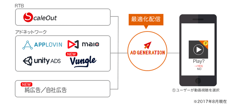 KDDIのグループ会社であるSupership株式会社(以下、Supership)は、同社の運営する媒体社向け広告配信プラットフォーム「Ad Generation(アドジェネ)」SSP(注1)の動画リワード広告において、新たに株式会社Vungleの提供するアプリ内動画広告プラットフォーム「Vungle」との連携を開始すると同時に、純広告/自社広告機能の提供を開始しました。