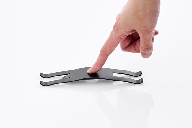 テーブルなどの広く平らな場所でお腹(中心)を指で押し、吸盤をつけると Baiin!! cat が跳び上がります。