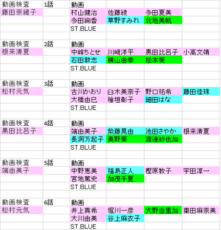 原画は人数やアニメーターも話数によってバラけていたのですが、どういうスケジュール管理をしたら動画と仕上を固定したメンバーで捌けるのか、甚だ謎です。