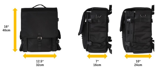 八咫鴉には上部を除くすべての側面に芯材を入れ、また拡張しても形崩れしない特性の金属フレームを導入しています。