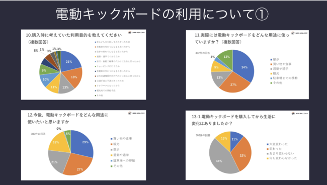 電動キックボードの利用者約300人に実施したアンケート結果も掲載