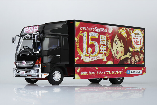 ●もっと稼ぎたい!!お金超大好き!!の宣伝文句で有名な「高収入求人情報バニラ」宣伝カーの1/32プラモデル!今度は音声ユニットと荷台のLED照明付きで登場します♪