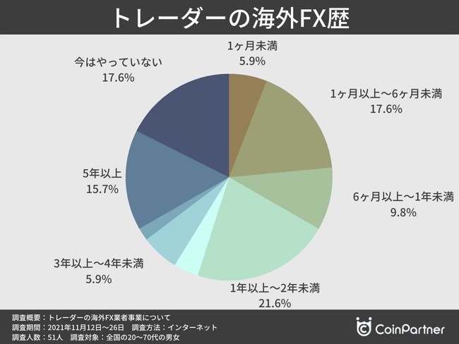 今回アンケートしたトレーダーの海外FX歴は上の通りになりました。
