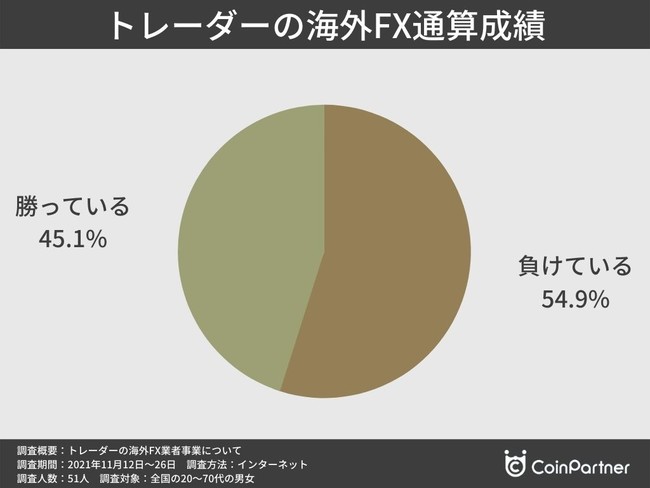 株式会社CoinOtaku(https://coinotaku.co.jp/)は、海外FXを行っている20〜60代のトレーダーに「トレーダーの海外FXの成績」に関するアンケート調査を実施しました。