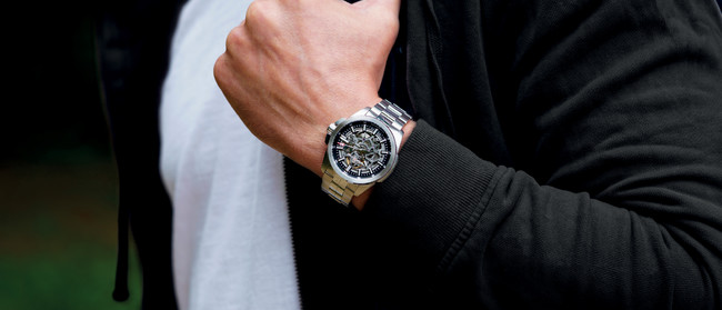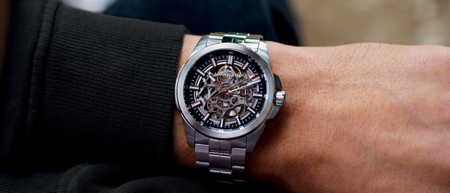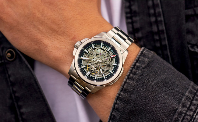 シースルーの文字盤からは、COSC認定キャリバーNN08S(メタリックルテニウムカラー)の魅力的なデザインを余すことなく楽しむことができます。