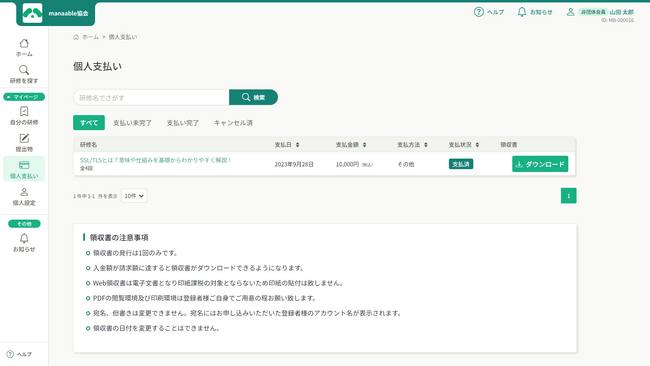 2022年1月より施行された改正電子帳簿保存法で、電子取引における電子データ保存が義務化されています。manaableは、受講者や受講者が所属する団体との決済に係る電子取引の保存に対応しています。
