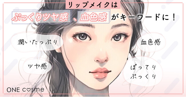 トレンド2:ぷっくりツヤ感のある血色のよいリップ