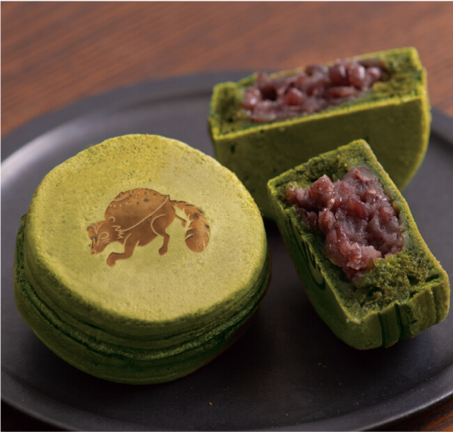 「抹茶を練りこんだ自家製生地を店舗で焼き上げる今川焼」