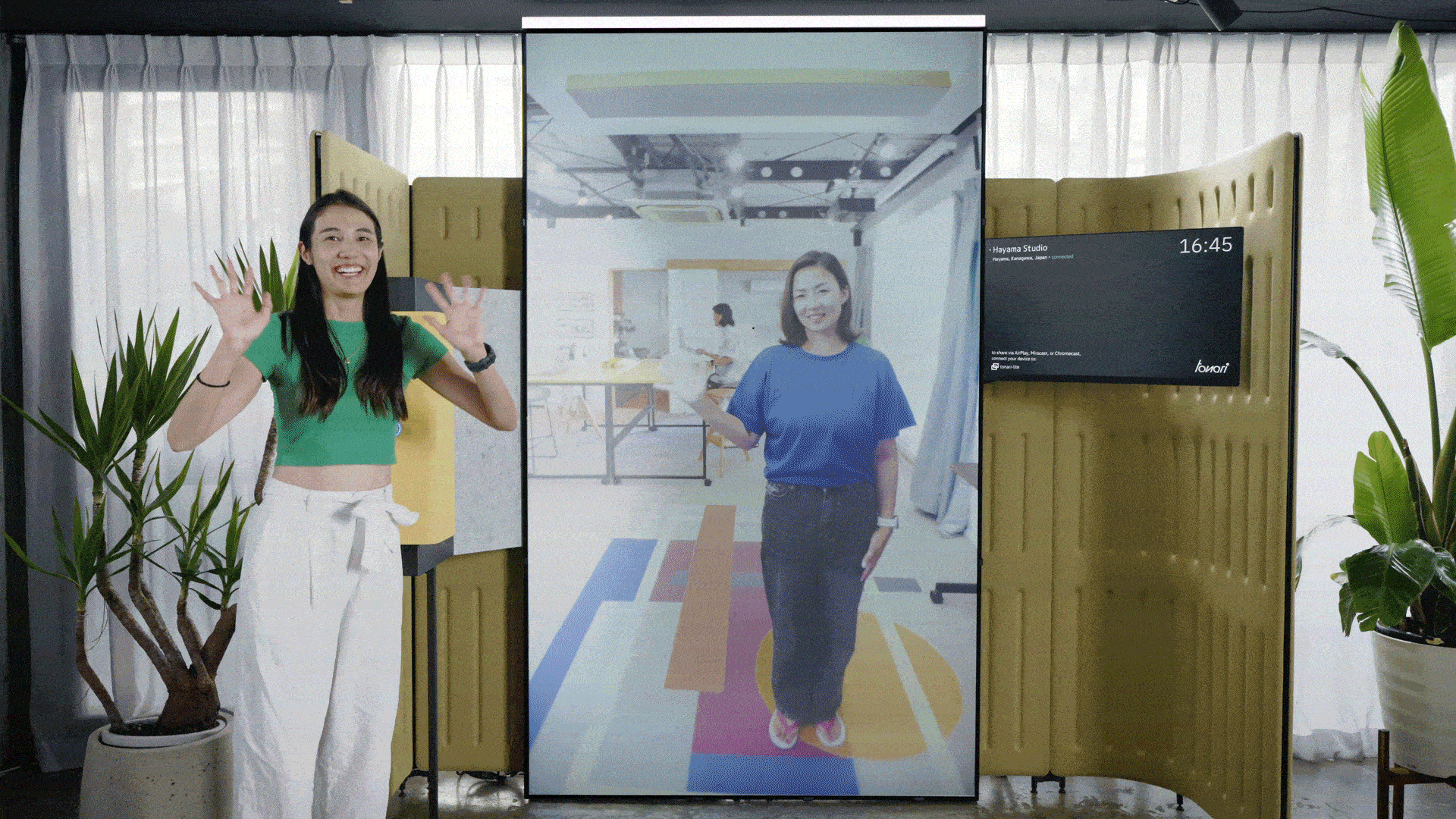 部屋全体を見渡せる大型スクリーンで、離れていてもそこにいるかのような空間共有を実現する「tonari」- 接続先を変えられる新機能と設置場所の自由度が高いオプションでさらに進化