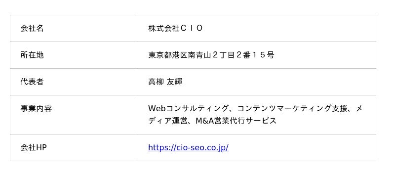 運営会社:株式会社CIOに関して
