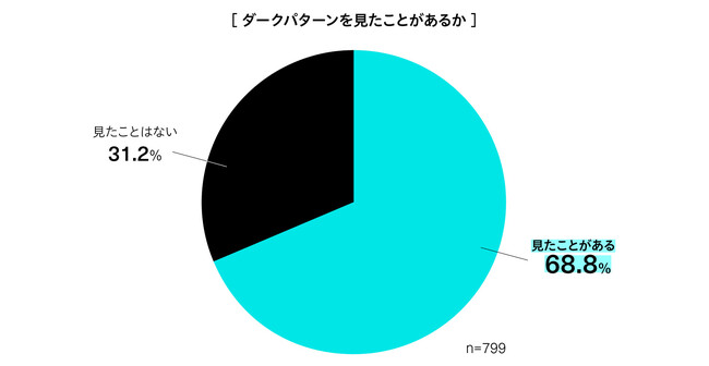 ECサイトやアプリでの購入経験者の約7割が、例示したダークパターンのいずれか1つでも見たことがあると回答。