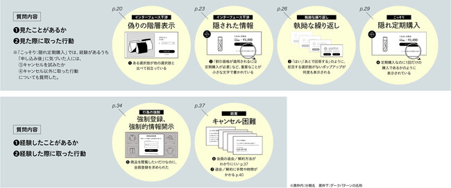 ダークパターンは、消費者に直接的に何かを強制することもあれば、気がつかれないよう巧妙に心理を操ってくることもあります。そのため、消費者の目からすべてのダークパターンを捉えることはできません。そうした構造的な制約が前提とはなりますが、本調査では消費者の目にはダークパターンがどのように映っているかを明らかにしています。