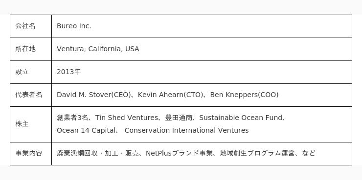 豊田通商は、ブレオ社が主に南米で行っている廃漁網回収スキームを他の地域・国にも広げるため、日本では現地
