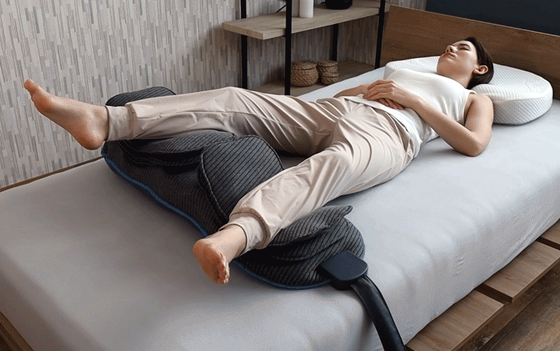 内蔵されたエアバックと最新の制御技術により、眠りを誘うリズムを刻みながら、脚を上下左右、内転・外転とあらゆる方向に動かし、もも裏や股関節など下半身全体を寝たまま心地よくストレッチします。