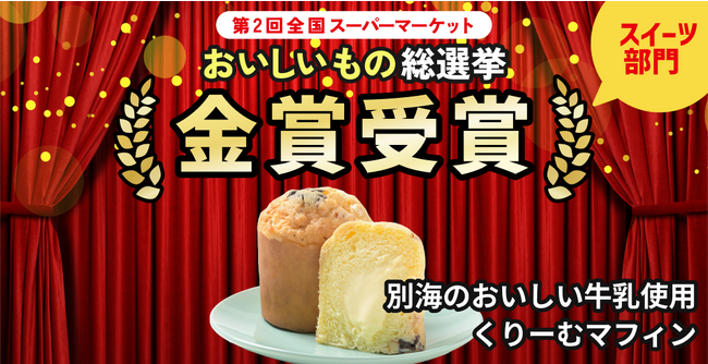 ukkaが共同開発、ベイシア「別海のおいしい牛乳使用 くりーむマフィン」「第2回 全国スーパーマーケット おいしいもの総選挙」スイーツ部門金賞受賞!