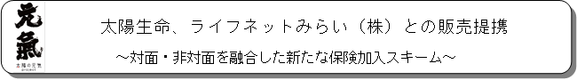 T&D保険グループの太陽生命保険株式会社(社長 副島直樹)は、ライフネットみらい株式会社(以下「ライフネットみらい社」)(*)と、お客様のニーズに応じて対面・非対面を融合した新たな保険加入スキームの実現に関する販売提携について、契約を締結しましたのでお知らせします。