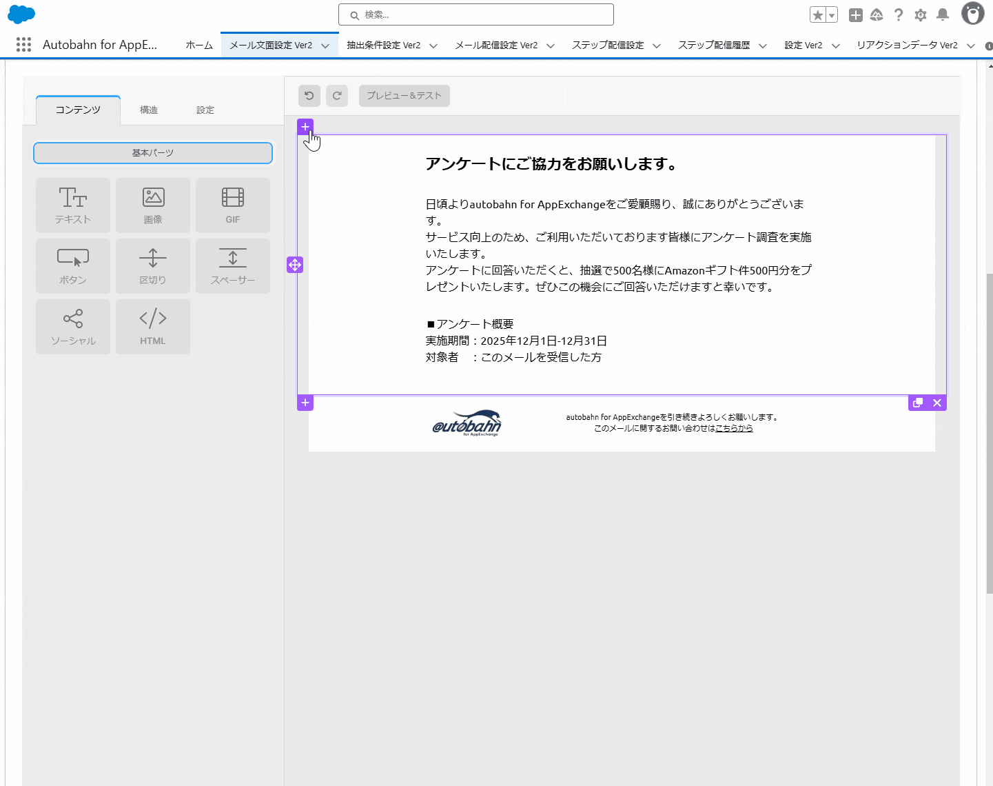 ※ビジュアルエディタは標準機能として実装しており、「autobahn for AppExchange」の管理画面から本機能を有効化することでご利用いただけます。
