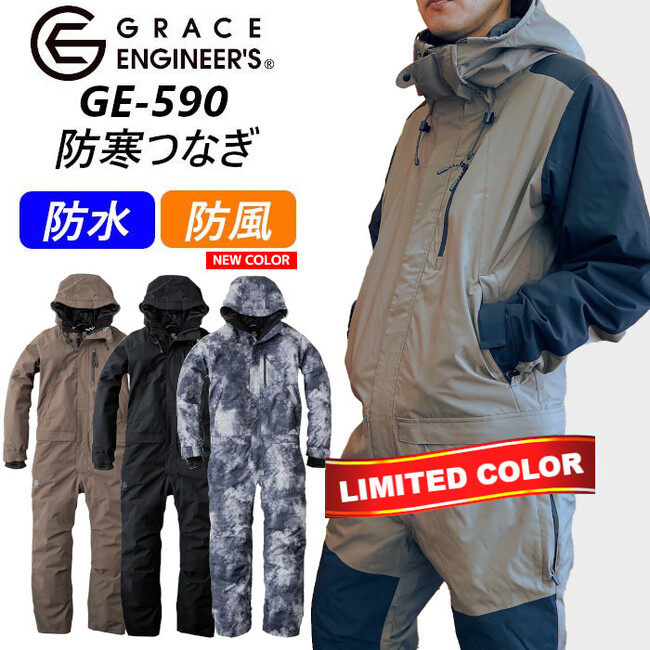 株式会社ススキ繊維 (本社:茨城県ひたちなか市) は、グレイスエンジニアーズの防寒つなぎGE590の限定色モカ×ブラックの販売を開始しました。