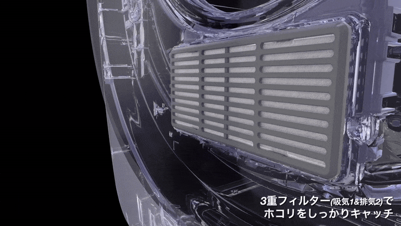 でも、ESTILOのフィルターは3重構造になっているので、衣類に潜むホコリやペットの毛なども乾燥しながらキャッチします。