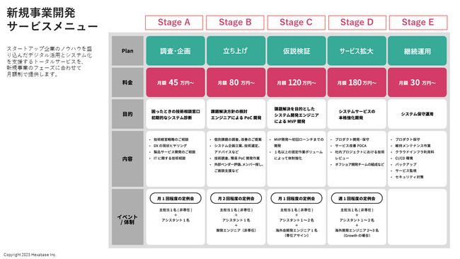 新規事業のフェーズ別の支援メニューを月額制で提供