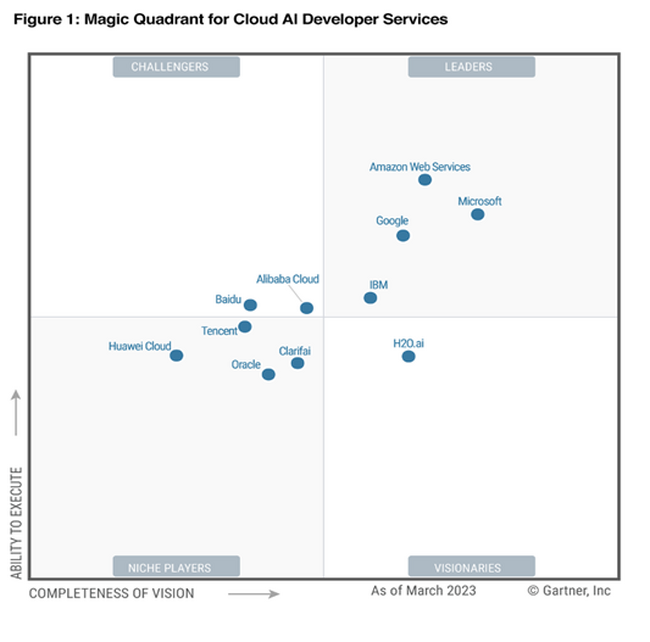Gartner、Magic Quadrant for Cloud AI Developer Services、ジム・シャイブメア、スヴェトラーナ・シキュラー、アルン・バチュ、マイク・ファン、ヴァン・ベイカー、フランク・オコナー、2023年5月22日