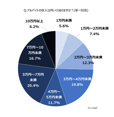 アルバイトをしている学生の43.3%が「月5万円の収入がある」と回答