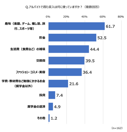 Q2. アルバイトで得た収入は何に使っていますか? (複数回答)