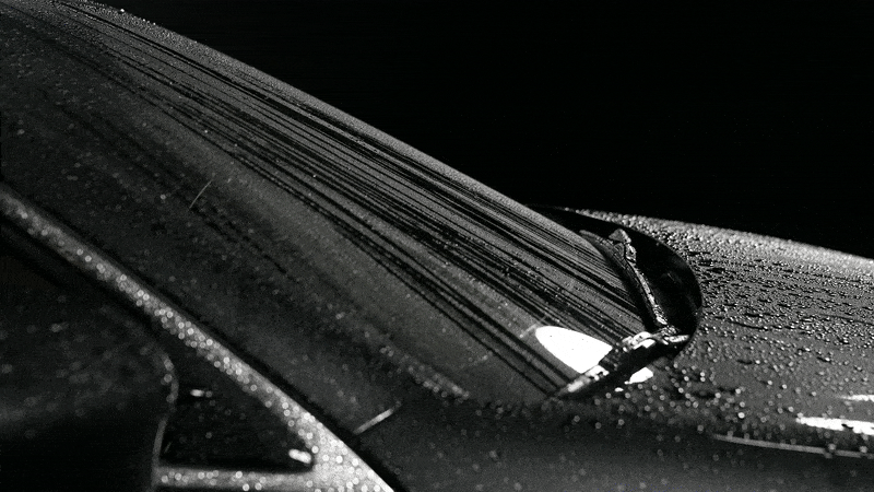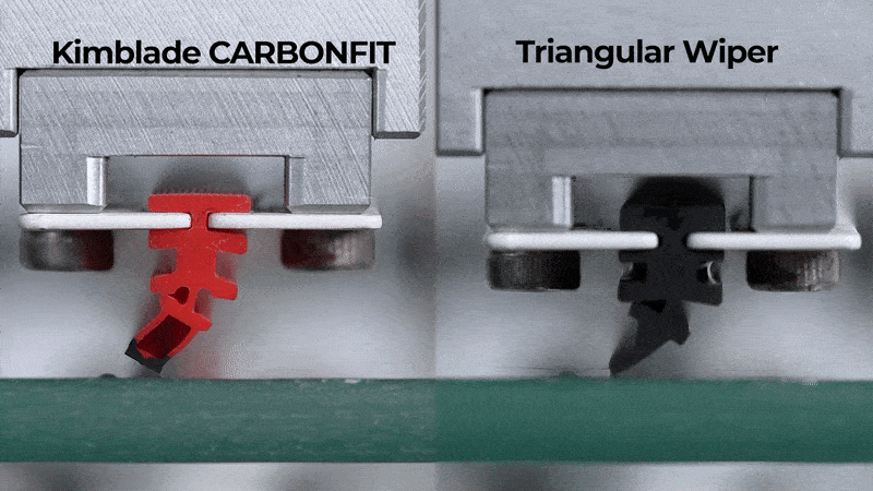KIMBLADEの四角形ワイパーは強力なエッジと相まって、効率的に水滴を拭き取ることができます。対照的に、従来の逆三角形ワイパーゴムは、スムーズに反転できずに水滴が残ることが多くあります。