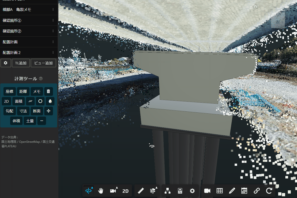 本機能では、選択した3Dモデルの「合計体積」をワンクリックで算出できるとともに、水平断面で分割したモデルの体積計算にも対応しました。これにより、3DCADソフトウェアを起動することなく、Webブラウザだけで3Dモデルを分割し、コンクリート数量などを算出するワークフローが可能になりました。現場のタブレット端末(iPad等)でも利用できます。