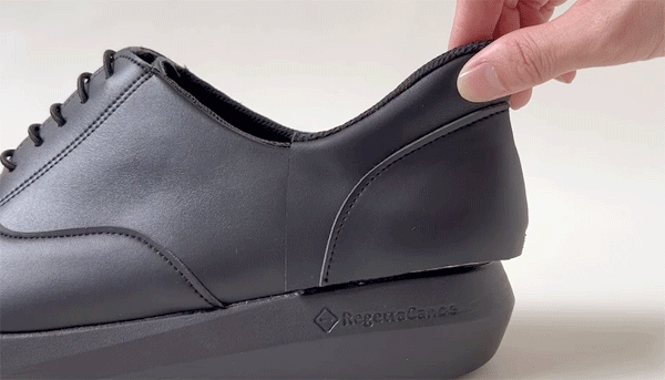 独自の設計により、カカトを乗せるだけで自然と足は靴の中へ“すっとん”。