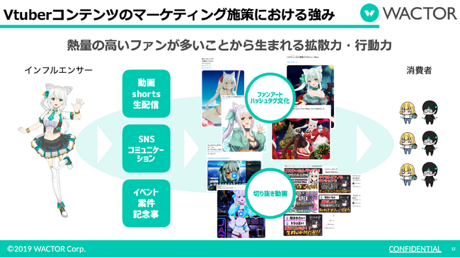 また専属VTuberだけでなく外部インフルエンサーと連携したインフルエンサー代理店事業も行っており、海外ファンに向けた日本企業の外国向けマーケティング支援や外国企業の日本国内向けマーケティング支援などグローバルマーケティングサポート「WACTOR GLOBAL NETWORK」を提供中です。