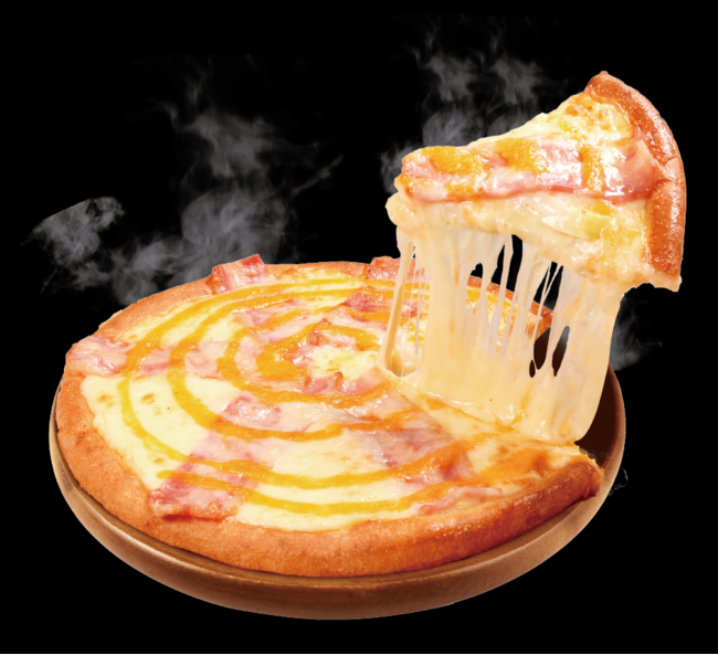 テンフォーのピザは通常のピザでも「チーズたっぷり」。それら「いつものピザ」の平均的チーズ量に比べ、さらに1.5倍以上のチーズ量で究極の「のび〜る体験」を実現しました。あつあつチーズがボリューミーな具材に絡んでチーズフォンデュ気分!チーズたっぷりの幸せを味わっていただきたいと思います。