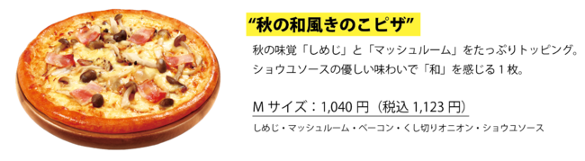 その他、定番Mサイズ1,040円(税込1,123円)テンフォーピザシリーズに秋限定“秋の和風きのこピザ”新登場。