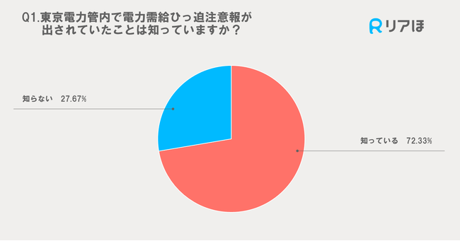 Q1.東京電力管内で電力需給ひっ迫注意報が出されていたことは知っていますか?