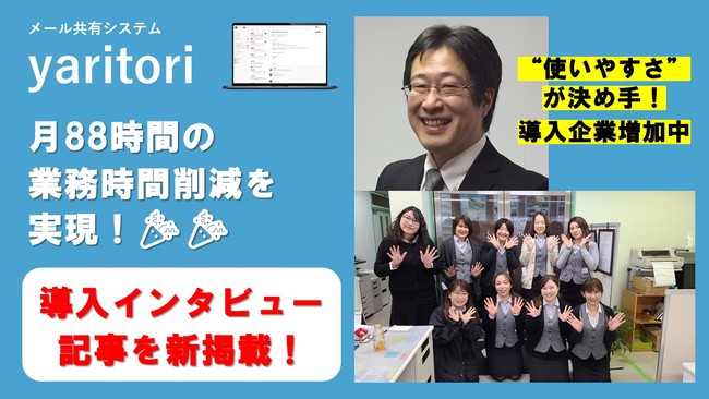 月88時間分の業務削減も|メール共有システム「yaritori」が実現する中小企業の業務効率化DXとは!?導入インタビューを掲載しました!