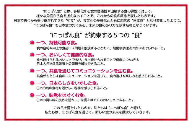 この度発表する“にっぽん食”の概念は下記のとおりです。