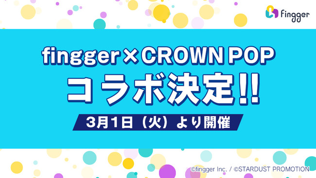 株式会社fingger(東京都品川区、代表取締役:吉江直人)は、2022年3月1日(火)より、「芸能界で王冠を掴むためダンスを磨いて奮闘中」のコンセプトに活躍する次世代ダンスアイドルユニット「CROWN POP」とのコラボレーションイベントを開催することをお知らせいたします。