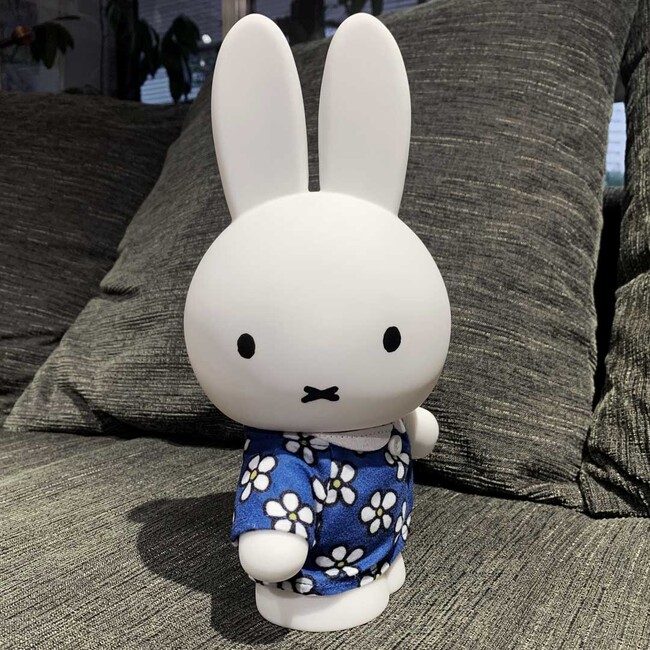 存在感抜群の全高約26cmのかわいいミッフィーが、ちょきんばこで仲間入り!首と腕が可動するので、ポージングもOK。着せ替え可能なかわいいお花柄ドレスを着た、素敵な貯金箱になりました。