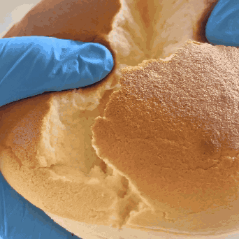 手で軽く触れただけで崩れてしまうほど、ぷるんぷるんの生地は、口の中で「シュワッ」ととろけて消える、まるで本物の雲を食べているかのよう。