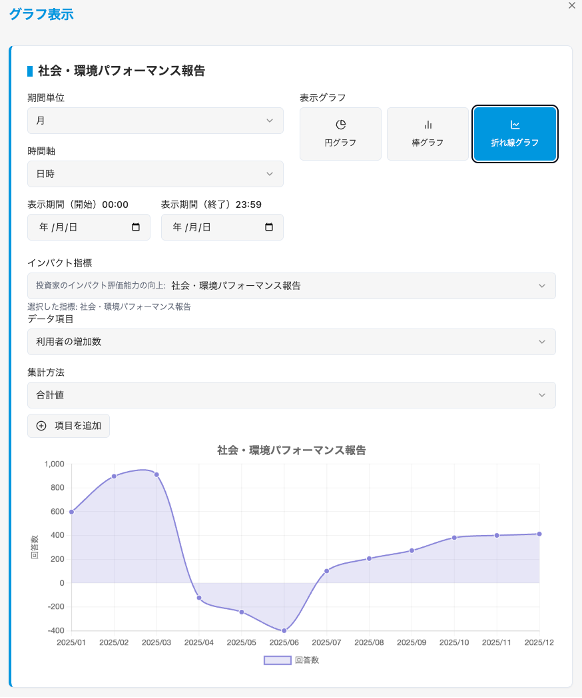 インパクト指標に関するデータをアップロードし、集計管理が実施できます。