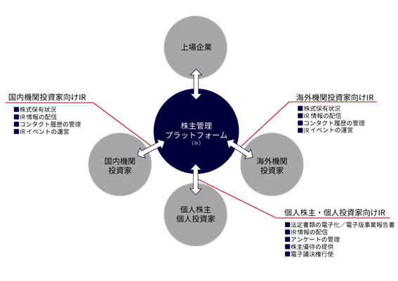 ウィルズは、2004 年の創業以来、機関投資家マーケティングプラットフォーム「IR-navi」、ポイント制株主優待と株主情報の電子化サービスを融合させた「プレミアム優待倶楽部」を中核として、株主管理プラットフォーム事業の拡大、及び株主管理分野の DX 化を推進し、上場企業の企業価値拡大を IR・SR という側面から支援している会社です。