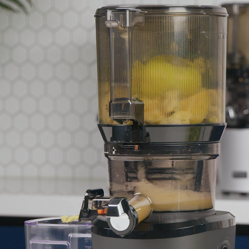 AUTOホッパー - 栄養を最大限にキープたっぷり1,700mlの大容量ホッパーで、一度に多くの食材を搾汁可能。材料を何度も追加する手間がなくなり、搾汁のプロセスがより効率的に。栄養をしっかり保ちながら、手間なくジュースが作れます。