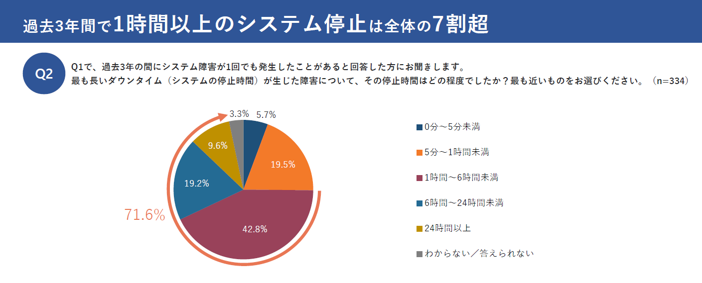 〜過去3年間で発生したシステム障害のうち、7割超が1時間以上のダウンタイムを経験〜