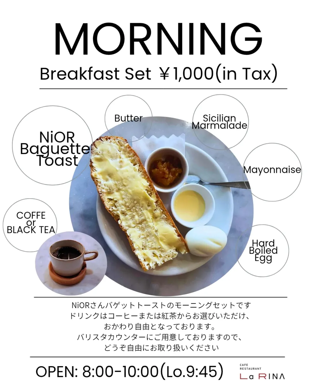 ・MORNING 8:00-10:00(L.O. 9:45)